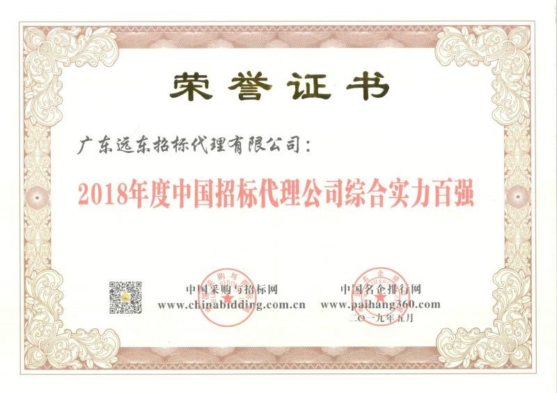 2018年度中國(guó)招標(biāo)代理公司綜合實(shí)力百?gòu)?qiáng)
